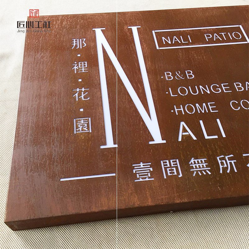 创意铁广告牌头招牌个性生锈铁锈字镂空仿古门艺箱户外复古灯发。热门设计联盟服务商