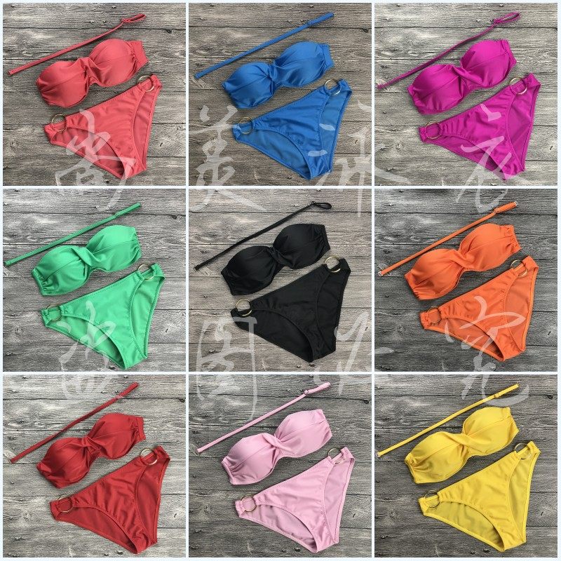 欧美外贸款女士比基尼速卖通金属大环十色小胸钢托聚拢游泳衣女热门设计联盟服务商