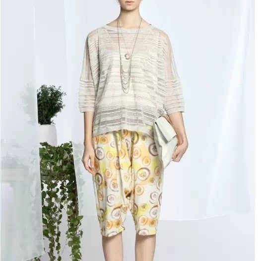 高端轻奢设计E*N 宽松掉档印花棉质休闲中裤热门设计联盟服务商