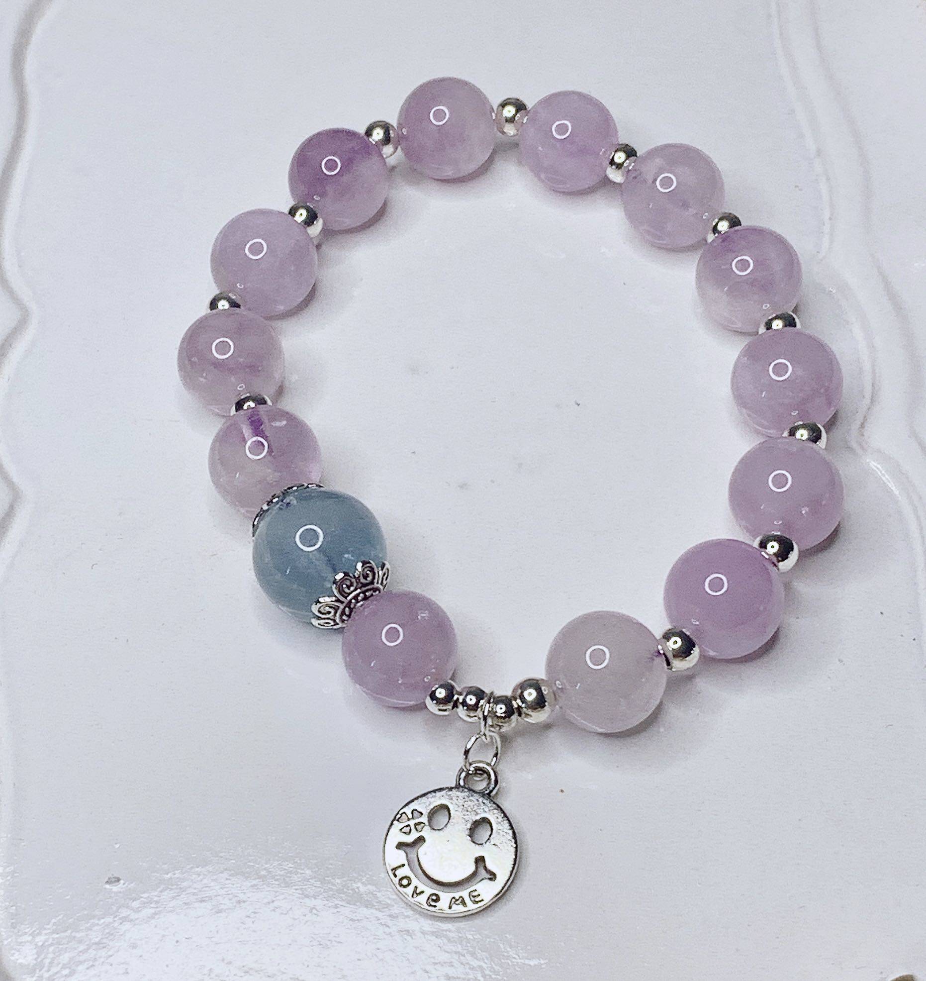 原创设计款天然薰衣草紫水晶手链10mm 配冰透体海蓝宝圆珠 13号热门设计联盟服务商