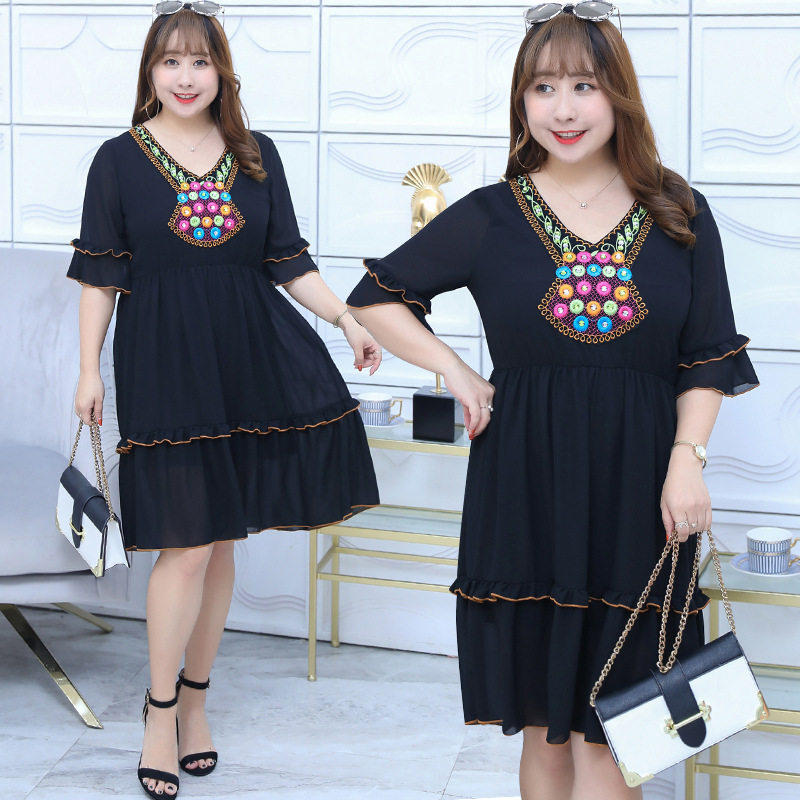 精品XXXL长裙通勤淑大码女装 胖MM服饰 民族风长款休闲夏季短款热门设计联盟服务商