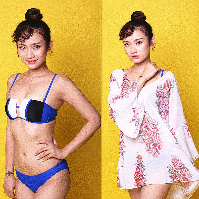 复古比基尼三件套宽松长罩衫外贸泳衣设计款温泉泳装长袖罩衫度假热门设计联盟服务商
